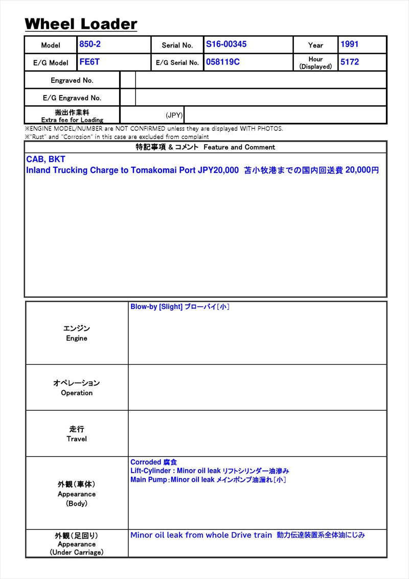 Inland Trucking Charge to Tomakomai port JPY20,000