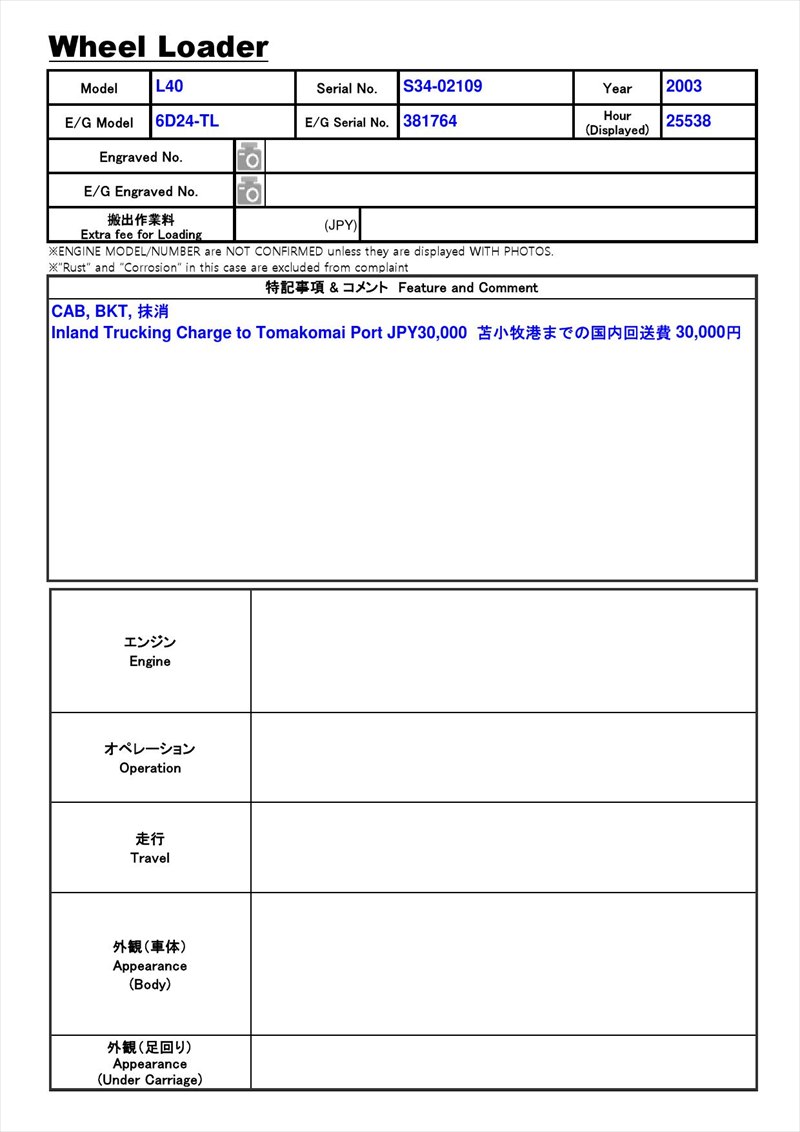 Inland Trucking Charge to Tomakomai port JPY30,000 Domestic forwarding charge to Tomakomai port 30,000 yen
